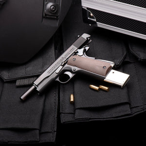Le M1911 est un pistolet historique à simple action connu pour sa fiabilité et son équilibre entre puissance et contrôle. Populaire parmi les tireurs de compétition et les collectionneurs, il occupe une place importante dans l'histoire, symbolisant l'héritage militaire américain, en particulier de l'époque de la Seconde Guerre mondiale et au-delà. La miniature de collection Maximum Armory M1911 honore cet héritage avec une réplique méticuleusement conçue, sans tir, à l'échelle 1:2,05, parfaite pour l'affichage et à des fins éducatives tout en préservant les caractéristiques clés du pistolet d'origine.