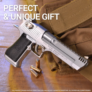 The Desert Eagle, often known as the “Deagle,” is an iconic semi-automatic pistol renowned not only for its precision in military use but also for its striking design, which is highly appreciated by collectors and weaponry enthusiasts. It is also one of the most frequently featured pistols in contemporary pop culture. Maximum Armory presents the Desert Eagle in a highly detailed 1:2.05 scale model, making it visibly smaller than the original—ideal for collectibles or educational purposes—without compromising its attitude, presence, or functionality. This Maximum Armory Desert Eagle features smooth manual shell ejection, a loadable magazine, and a controllable non-firing trigger, enhancing the authentic experience of a real pistol.